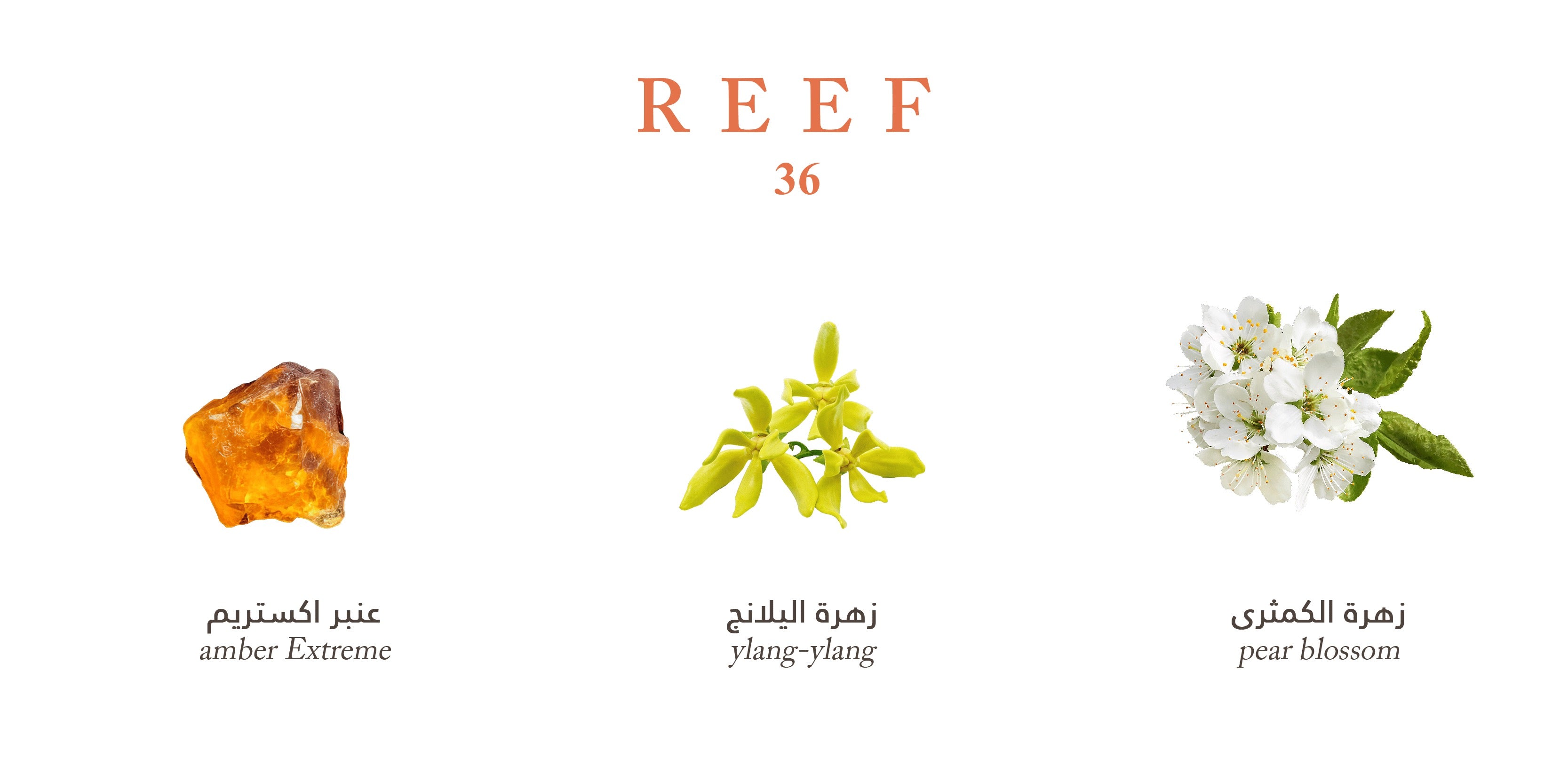 As if you were strolling through a garden rich with vibrant colors, where the fragrance of flowers blends with the gentle breeze. With a heart that combines the rich and seductive ylang-ylang blossom, Reef 36 complements your personality with unprecedented elegance and refinement. This unique composition highlights your character and adds a touch of charm and allure to every moment you experience. But the composition does not stop there; it is supported by a warm base and the depth of rich amber, making Reef 36 perfect for both men and women, adding a captivating touch that lasts long.